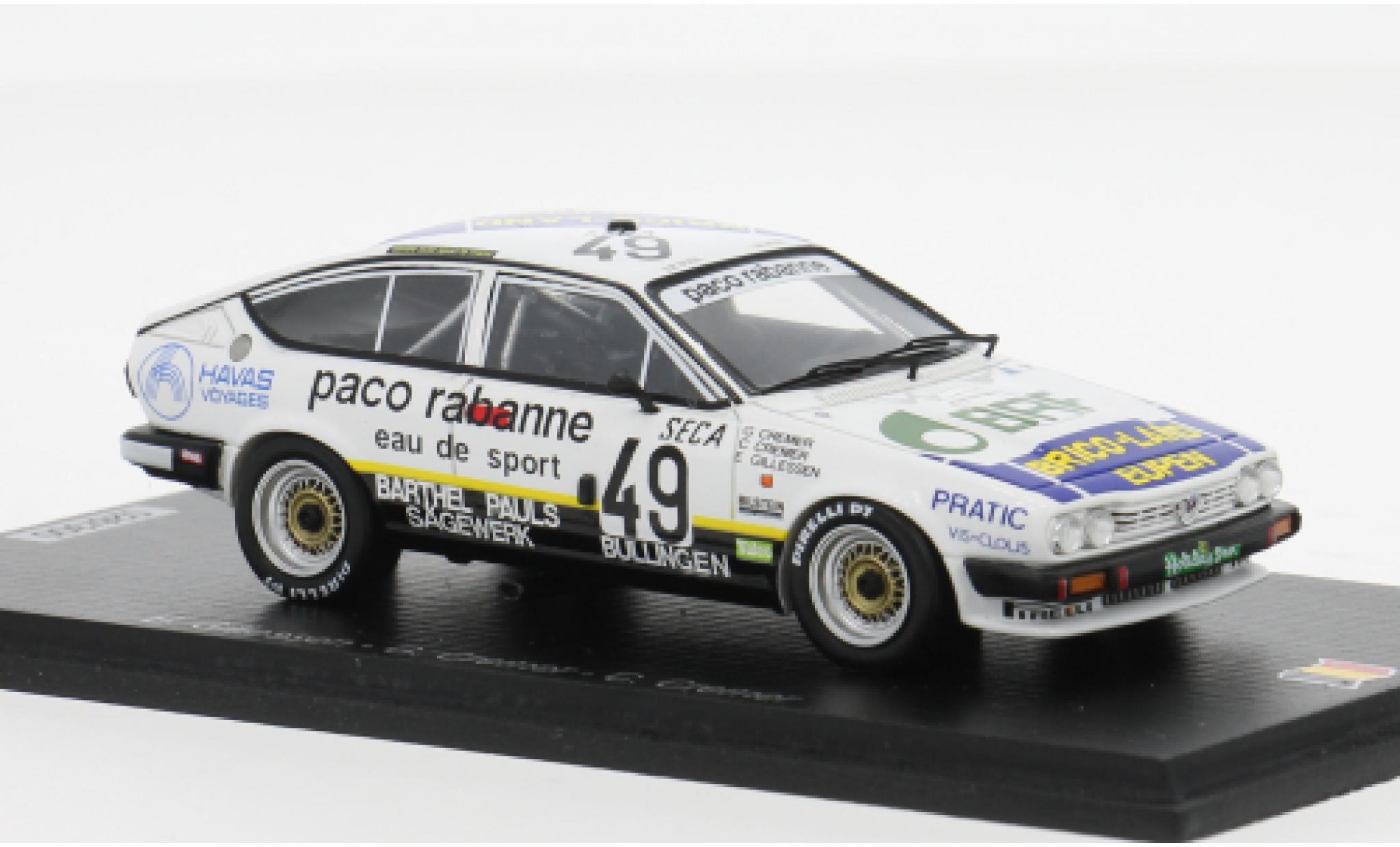 DU BIST HIER : MINIATURAUTO > ALFA ROMEO MODELLAUTOS > ALFA ROMEO GT MODELLAUTOS > Alfa Romeo GT 1/43 Spark V 6 24h Spa 1986 #49 1:43