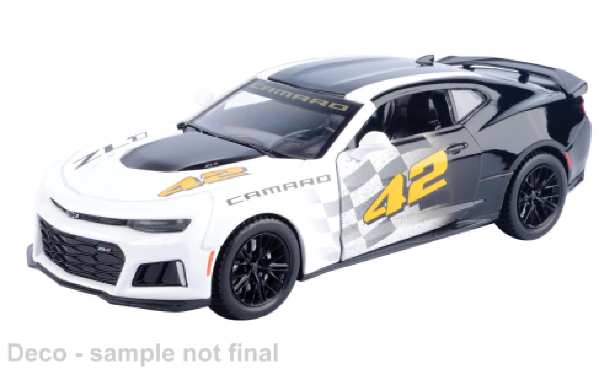 DU BIST HIER : MINIATURAUTO > CHEVROLET MODELLAUTOS > CHEVROLET CAMARO MODELLAUTOS > Chevrolet Camaro 1/24 Motormax ZL1 weiss/schwarz 1:24